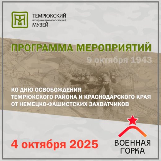 🎖️4 октября ко Дню освобождения Темрюкского района и Краснодарского края от немецко-фашистских захватчиков в музейном комплексе «Военная горка» пройдут праздничные мероприятия! Программа: ✅10.00 — 17.00 – «Память пылающих лет»: цикл тематических экскурсий в вагоне поезда;Читать полностью