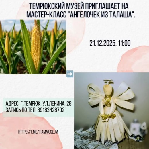 Наши дорогие друзья! Музей истории казачества станицы Старотитаровская приглашает вас провести январские каникулы с нами! Выбирайте понравившееся мероприятие — ждем вас! ☃️2 января 11:00, 15:00 Создаем малыша снеговика ☃️3 января 11:00, 15:00 Мастерим рождественского ангелаЧитать полностью