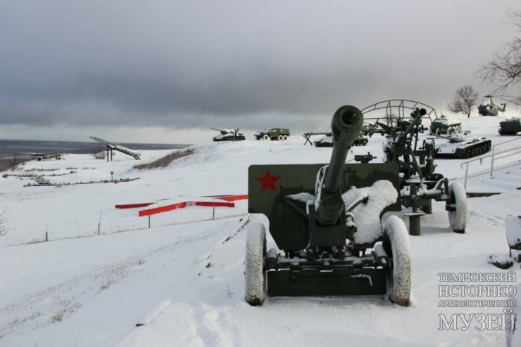 83 года назад, 12 февраля 1942 г., постановлением ГКО на вооружение Красной Армии была принята 76 — мм дивизионная пушка ЗИС-3, разработанная под руководством легендарного конструктора В. Г. Грабина. В конце 1983 г. одно такое орудие было доставлено в Темрюк из города Новочеркасска, из войсковой части Краснознаменного Северо-Кавказского военного округа. Вскоре оно стало экспонатом музея истории боевой техники «Военная горка».