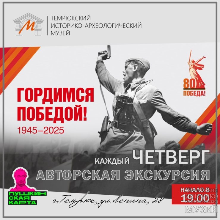 В Год защитника Отечества и в рамках краевого межмузейного проекта «80-летию Великой Победы — 80 героических страниц» в Темрюкском музее пройдет уникальная по своему содержанию и формату экскурсия — погружение в историю нашего района! Вы сможете познакомиться с событиями 23 сентября 1943 г. и подвигом советских летчиков Михаила Колодия и Евгения Алехина, совершивших огненный таран в Таманском небе. Помимо рассказа о героях, вы сможете увидеть уникальные предметы и даже деталь того самого самолета! Ждем вас — вход на мероприятие доступен при покупке входного билета в музей: от 90 до 210 рублей. Кстати, вход доступен и по Пушкинской карте! Ждем вас!