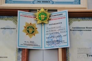 Представители Наградного Комитета АНБО «Русский Ветеран – доброволец» вручили Темрюкскому историко-археологическому музею грамоту, наградной лист и почетный знак «Русский ветеран-доброволец».