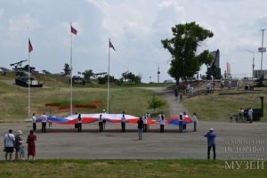 🧧 Музейный комплекс, сам по себе являющийся символом мужества и героизма, стал свидетелем торжественной церемонии развертывания самого большого флага города. Под звуки гимна Российской Федерации, участники волонтерского движения «Энергия добра» при компании ОТЭКО вынесли государственный символ, олицетворяющий единство, мощь и независимость страны.