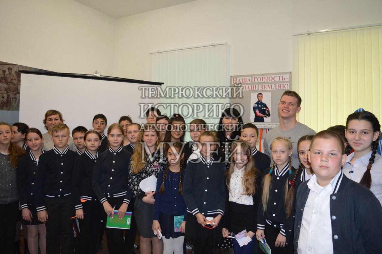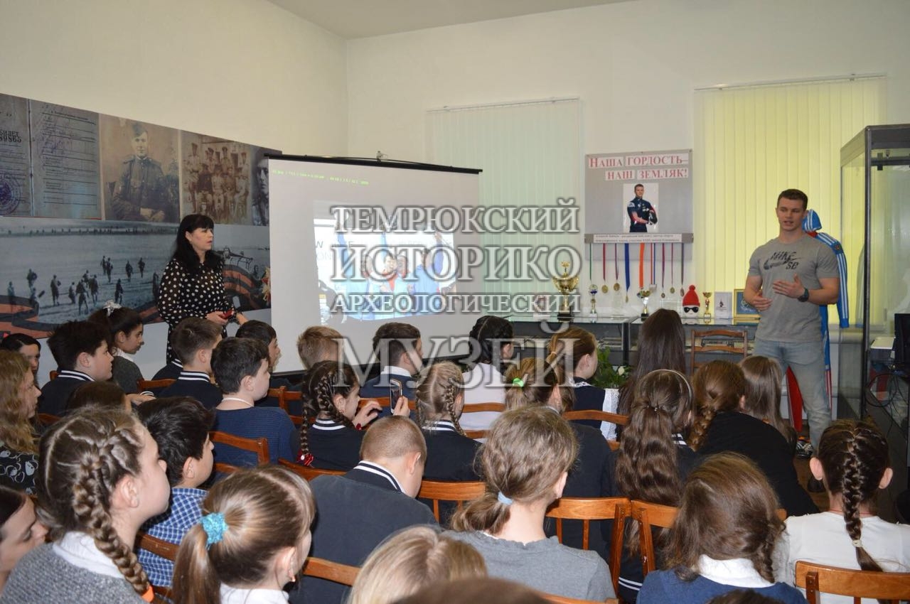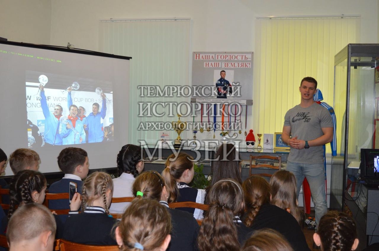 5 апреля в отделе истории казачества Темрюкского историко-археологического музея прошел спортивный час «Встречаем олимпийца». Учащиеся 5-х классов школы № 6 встретились с Алексеем Зайцевым, заслуженным мастером спорта международного класса по бобслею, участником XXIII Зимних Олимпийских игр в Пхёнчхане, уроженцем станицы Старотитаровской. От Алексея ребята узнали о трудностях на пути к спортивным победам и как важно верить в себя и в свои силы, чтобы добиться высоких результатов. Итогами приложенных Алексеем усилий стали многочисленные кубки и медали, которые ребята смогли увидеть на выставке «Наша гордость — наш земляк».