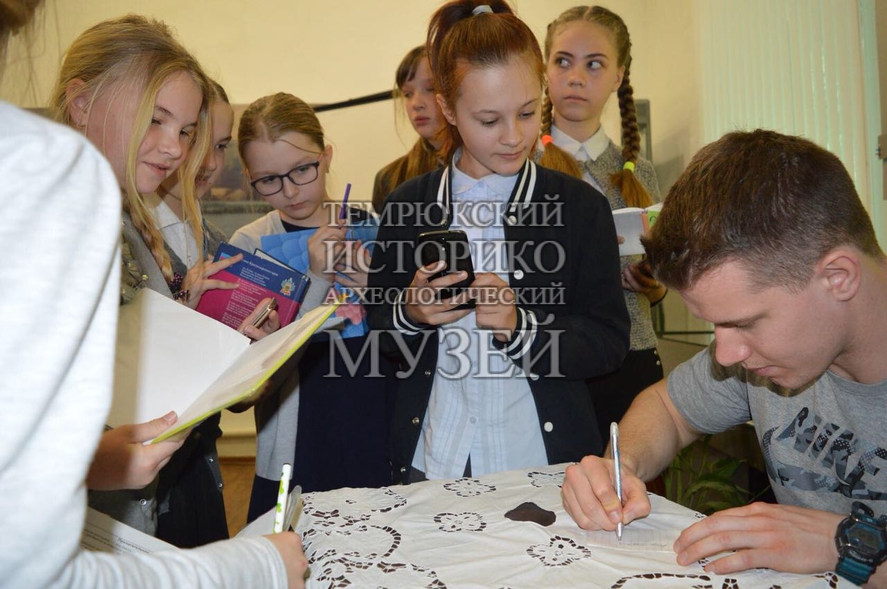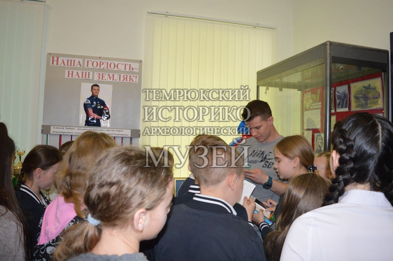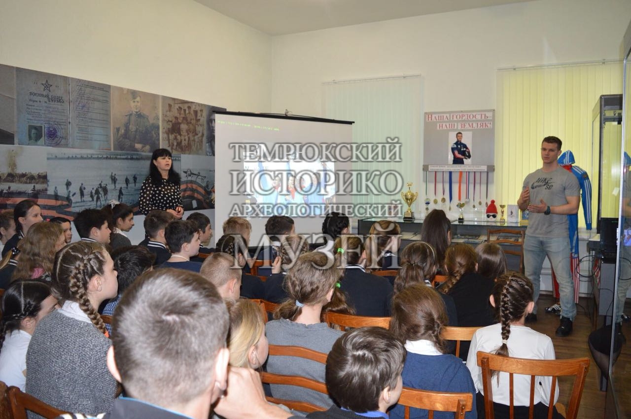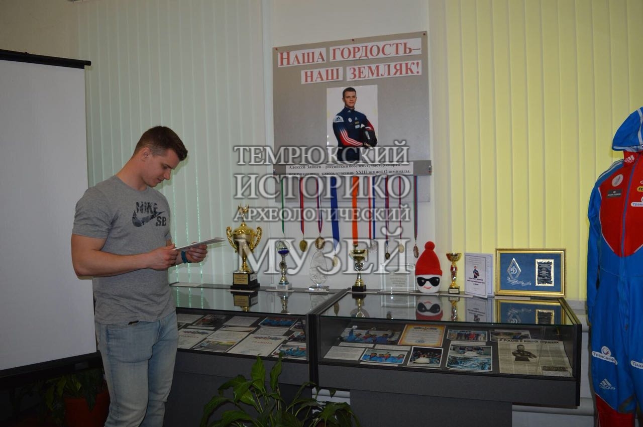 5 апреля в отделе истории казачества Темрюкского историко-археологического музея прошел спортивный час «Встречаем олимпийца». Учащиеся 5-х классов школы № 6 встретились с Алексеем Зайцевым, заслуженным мастером спорта международного класса по бобслею, участником XXIII Зимних Олимпийских игр в Пхёнчхане, уроженцем станицы Старотитаровской. От Алексея ребята узнали о трудностях на пути к спортивным победам и как важно верить в себя и в свои силы, чтобы добиться высоких результатов. Итогами приложенных Алексеем усилий стали многочисленные кубки и медали, которые ребята смогли увидеть на выставке «Наша гордость — наш земляк».