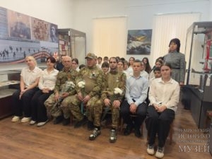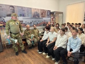 Приглашенные гости – участники СВО Нурмагомед Аскеров, Алексей Быков, Виктор Сайдаков — поделились с ребятами личными воспоминаниями. Учащиеся воочию увидели доказательства их мужества — боевые медали: «За боевые заслуги», «За отвагу», «За доблесть», «За участие в СВО» и медаль Жукова.